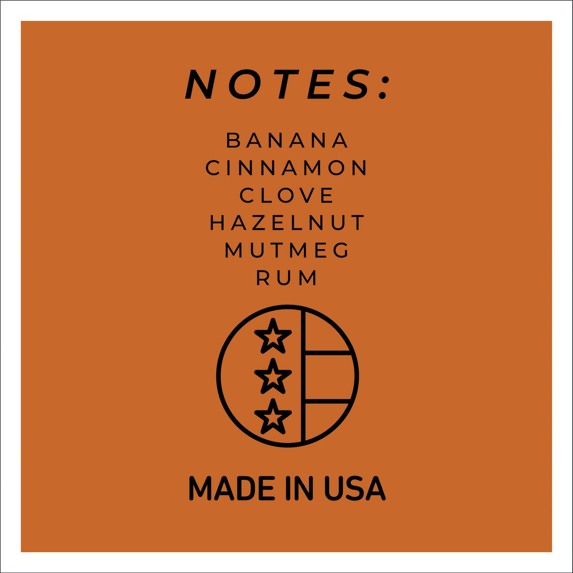 • Fragrance Description: An enticing blend of banana rum, cinnamon, clove, nutmeg and hazelnut.