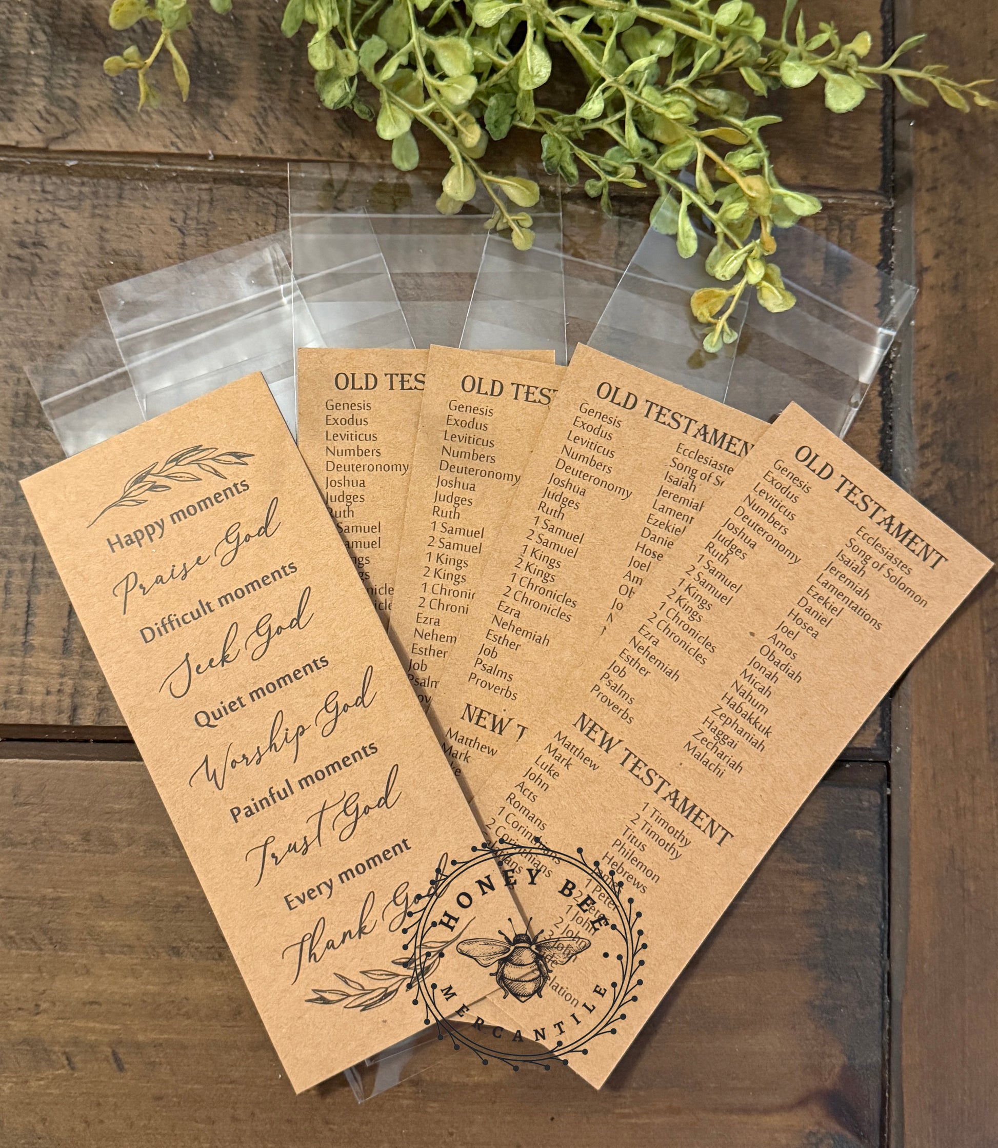 Keep your place and your peace with this set of five Scripture-inspired double sided bookmarks, beautifully printed on warm kraft cardstock with a simple, timeless design. Each set includes bookmarks listing the Books of the Bible (Old and New Testament) along with a gentle daily faith reminder —